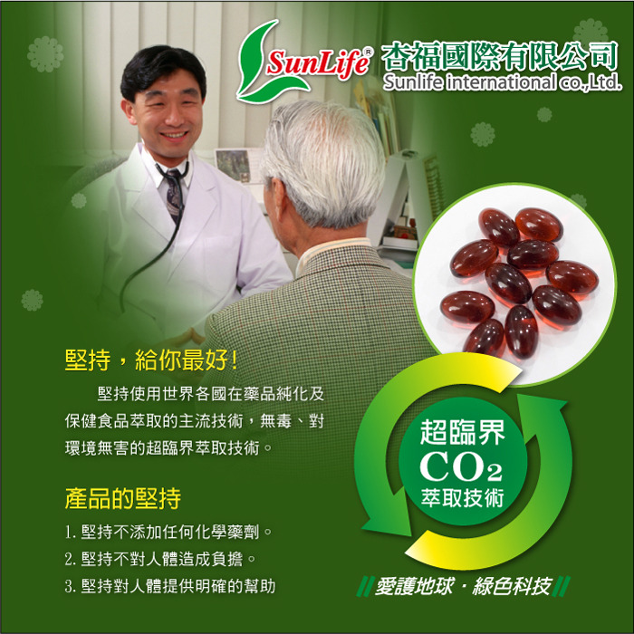 ◆堅持,給你最好:堅持使用世界各國在藥品純化及保健食品萃取的主流技術,無毒、對環境無害的超臨界萃取技術